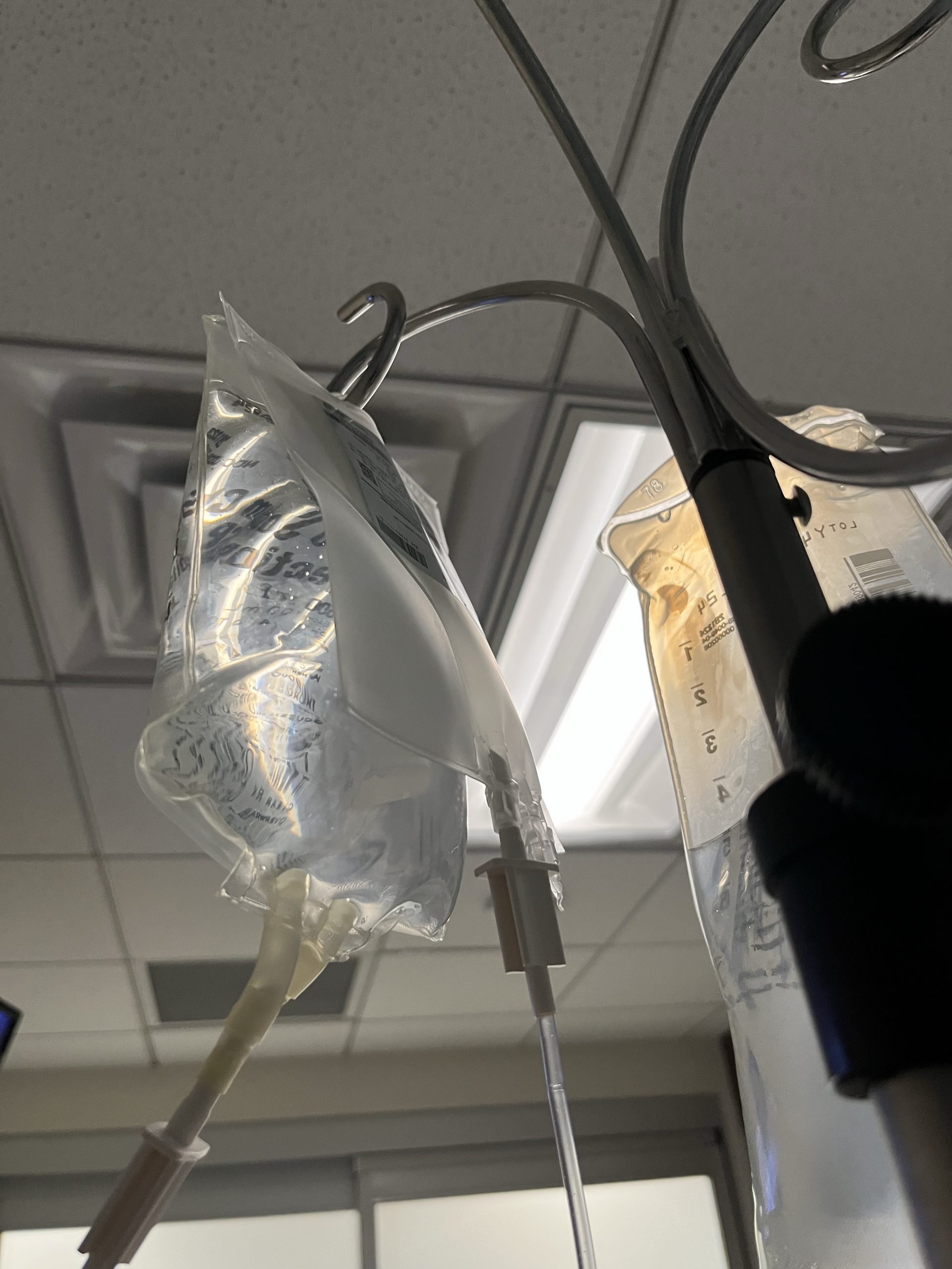 We returned on February 5th, 2023 a Sunday to make sure that her blood had all of the correct numbers for the apheresis on the following day. Her hemoglobin was low and so they determined to give her a unit of blood. She almost made it with only one unit but her numbers were still a bit low from the chemo, so she was given another unit.
